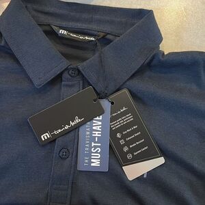 Travis Matthew Navy Blue Tiny Striped Short Sleeve Polo with Side Slits- Medium