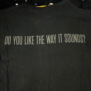 Bold black tee with striking graphic design. Features unique artwork on the front.
