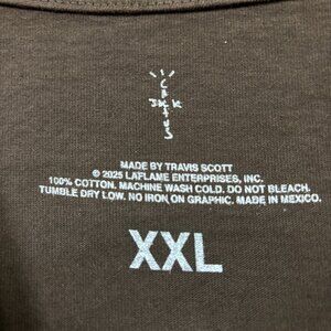Travis Scott brown ls shirt size xxl It roughly measures 26 inches pit to pit 31 inches long. Great shirt for your closet.