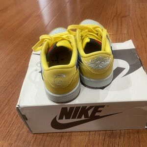 Stylish sneakers with a bold yellow and blue design. Perfect for kids on the go. WORN ONCE shoe box included