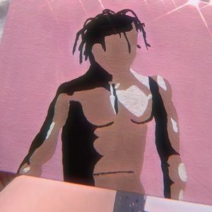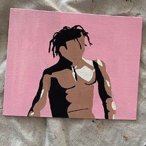 Travis Scott Rodeo Painting with pink background :) custom made and super cute room decor for a wall or desk :)