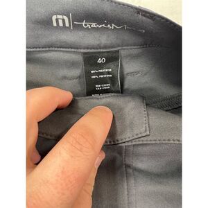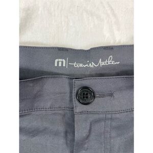 Keywords: TravisMathew, men's pants, size 40 Standard, gray pants, straight fit, casual wear, polyester pants, classic style, durable fabric, pre-owned, logo waistband, button closure, solid pattern, men's fashion, regular size.