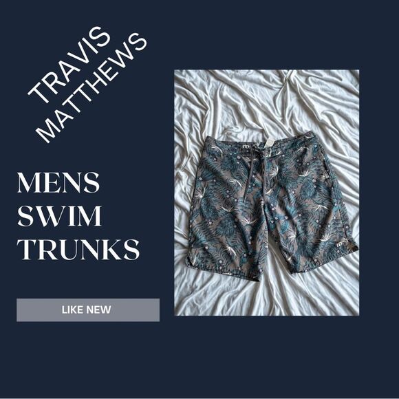 Travis Mathew Men's Swim Trunks - Black and Green EUC