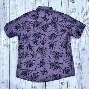 TravisMathew Palm Leaf Button Down Shirt Men’s XL Purple Short Sleeve