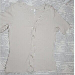 TravisMathew Women’s Ribbed Knit Button-Front Top – Size M Beige (Style 1LE008)