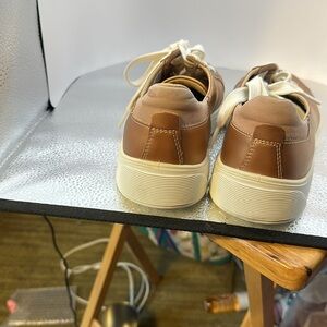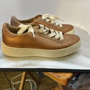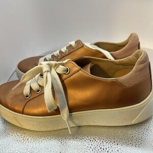 Tray Tech athletic shoes. They are beautiful gold color with white trim. Size 7