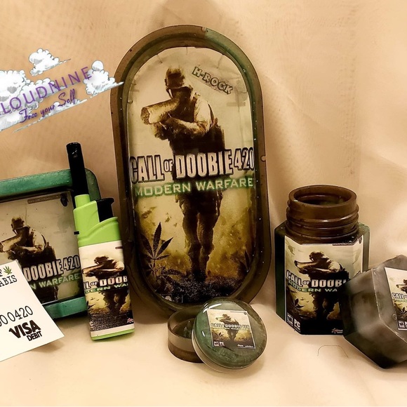 There’s a grinders there’s a tray to break up on and roll joints you can store your joints after you roll them and extra jars to store your trees and also there are ashtrays