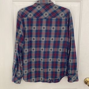 Love this Aztec Style Snap Front Shirt from Treasure & Bond. I’ve worn as a woman but did purchase in men’s dept. Snap Cuffs, Two Front Snap Pockets. 100% Cotton. Boho, Western Vibe. Size Small.