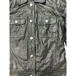 Treasure & Bond Black Long Sleeve Button Front Leather Biker Jacket Size XS