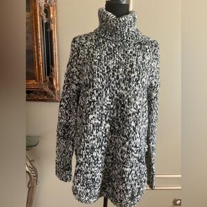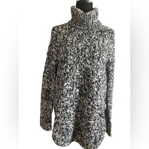 Treasure & Bond Black White Marled Chunky Knit Turtleneck Sweater Size Medium