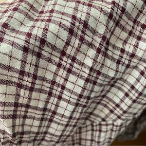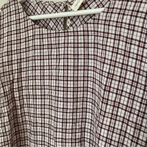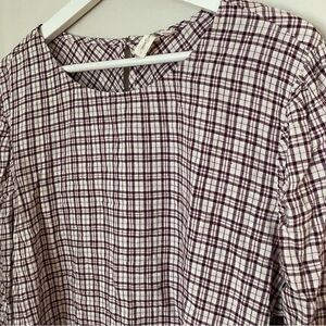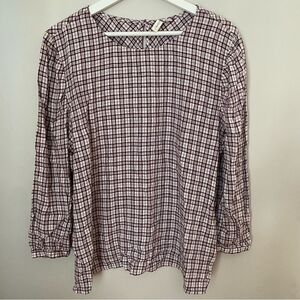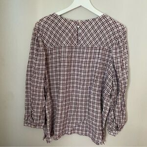 Treasure & Bond Blouse Plaid Long Sleeve Keyhole Back Purple Burgundy Linen Rayon