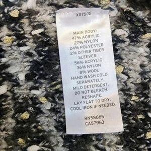 Stylish sweater with blue and gray stripes. Features a cozy knit design. Perfect for casual wear.