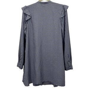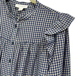 Treasure & Bond Blue Gray Plaid Button Up Long Sleeve Babydoll Dress Ruffle