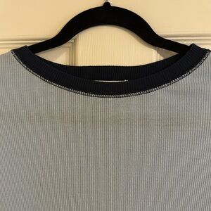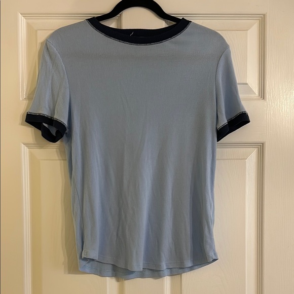 Two tone light and navy blue ringer tee from Treasure & Bond. Ribbed stretch material.