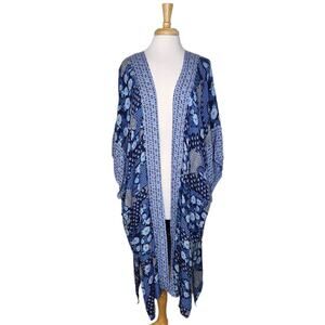 Features: Open front, 3/4 sleeves, long length.