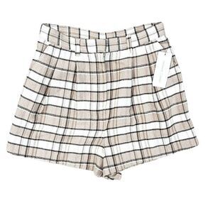 Treasure & Bond Tan Chanterelle Plaid Shorts Soak in the sunshine while staying chic in these posh pleat-front shorts covered in plaid and cut from a breezy cotton blend. Front slash pockets Back functional pocket Pleated front 63% cotton 24% viscose 13% polyester Machine wash, hang to dry NWT Please see photo. There is no button or button hole on the waistband in the front as shown on the model photo. size 8 See photos for measurements Treasure & Bond Tan Chanterelle Plaid Shorts NWT Please see photo. There is no button or button hole on the waistband in the front as shown on the model photo. size 8 See photos for measurements