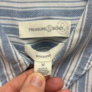 Treasure & Bond Button Up Shirt Womens Boyfriend Fit Stripe Print - size Medium