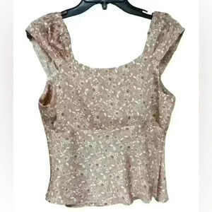 Treasure & Bond Cap Sleeve Satin Top in Pink Louis Floral Size M
