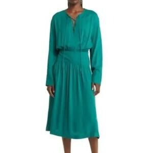 Treasure & Bond Dress Long Sleeve Lace-Up Neck Blouson Midi Green Heirloom M