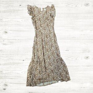 Treasure & Bond Floral Flutter Sleeve Dress XXS Linen Blend