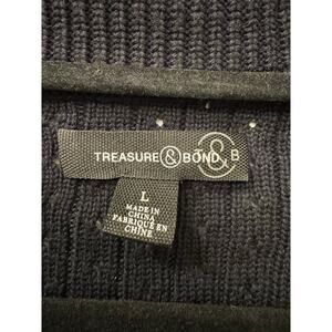 Treasure & Bond Men's Large Black Short Sleeve Crochet Button Down Shirt Cotton