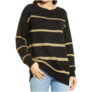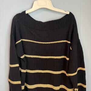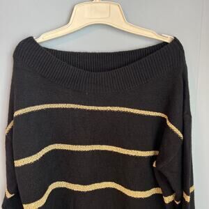 Treasure & Bond Metallic Gold Striped Sweater in Black - Gold Size Medium NEW
