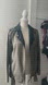 Olive army biker jacket with epaulets, two front zippered pockets, waistline belt, and colorblocked black lapel. Gunmetal hardware. Approximate 27.5" length. Exterior 100% Cotton. Lining 80% Polyester, 20% Cotton. New without tags. Bundle and save!