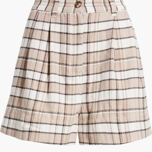 Treasure & Bond Plaid Pleated Cotton Blend Women's Shorts