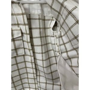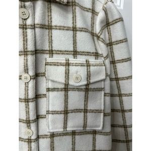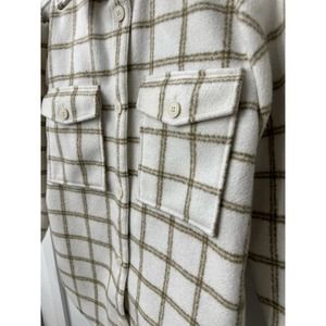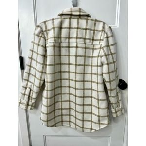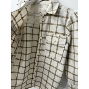 Treasure & Bond Plaid Puff Sleeve Shirt Jacket Ivory Plaid Button Up MSRP $129