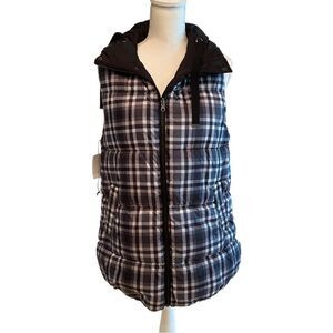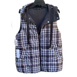 Nordstrom’s Treasure & Bond Check Black & White  Reversible Winter Vest With Hood