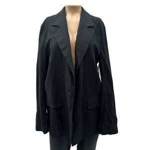 Treasure & Bond Single Breasted Blazer Jacket Black Linen Blend Oversized Size S