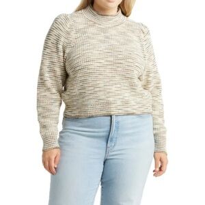 Treasure & Bond Space Dye High Neck Knit Sweater Small Puff Sleeve