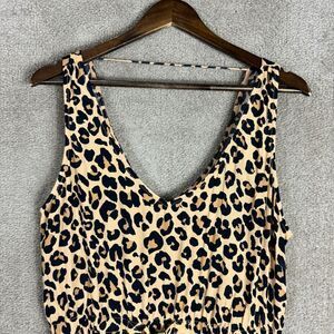 Treasure & Bond Sun Dress, Leopard print, Midi length, Sleeveless, Double v neck, Drawstring waist, Side pockets, Unlined, 100% viscose
