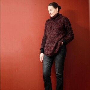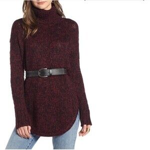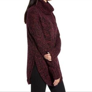 Treasure & Bond Turtleneck Sweater Chunky Marled Burgundy & Black Size Small
