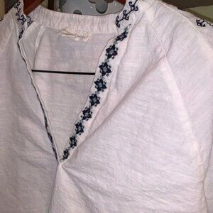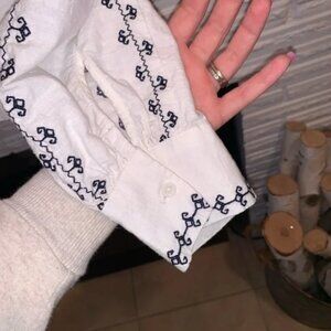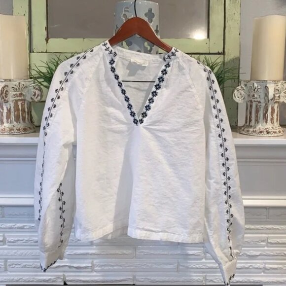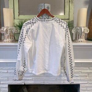 Treasure & Bond White V-Neck Boho Embroidered Long Sleeve Top Small NWT