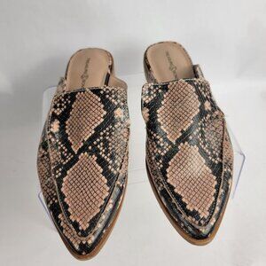 Treasure & Bond Womens 6.5 Tan Snake Print Slip On Mules Business Casual Office