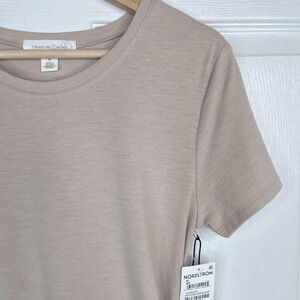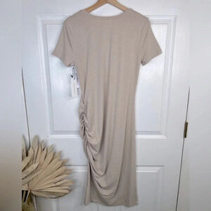 Treasure & Bond Women's Beige Oatmeal Ruched Side T-Shirt Midi Dress Size M