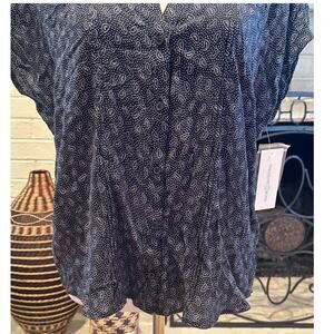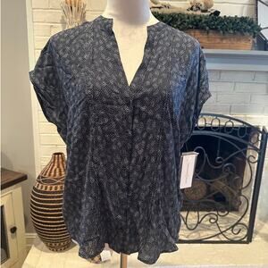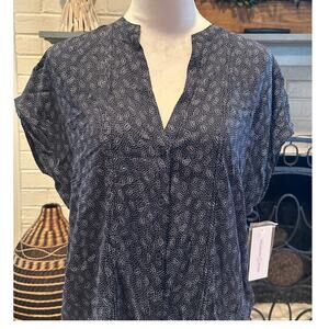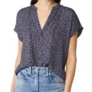 Treasure & Bond Womens Blue Paisley Short Sleeve Button Front VNeck Blouse M NWT
