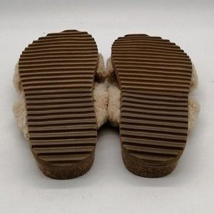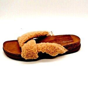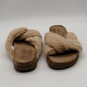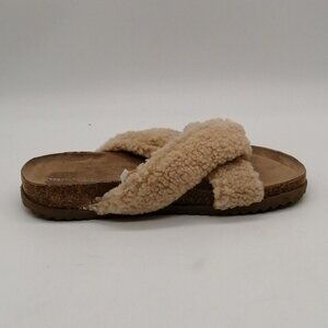 Treasure & Bond Womens Criss Cross Strap Slide Slipper Tan Faux Fur Flat 9M
