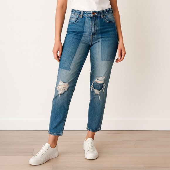 Treasure & Bond Women’s Distressed Jeans 30 Patchwork Relaxed Crop Casual Edgy