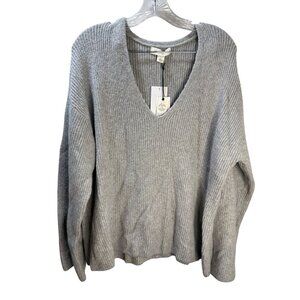 Treasure & Bond Womens Grey Ribbed Knit V-Neck Sweater Size L