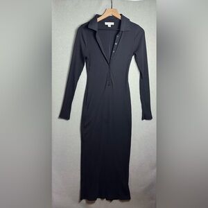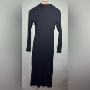 Treasure & Bond Women’s Long Sleeve Cotton Blend Rib Sweater Midi Dress Black size S