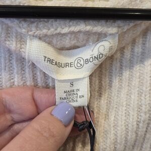 Treasure & Bond Women's Ribbed V-Neck Knit Sweater Small Beige Oatmeal New