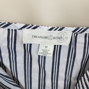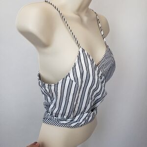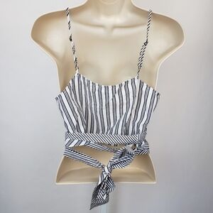 Treasure & Bond Wrap Camisole Top Cropped White Navy Mixed Stripe size medium