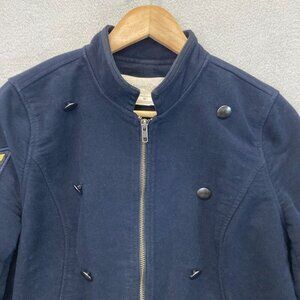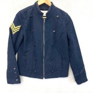 Treasure & Bond Zip Up Military Jacket Womens Medium M Navy Blue Double Breasted