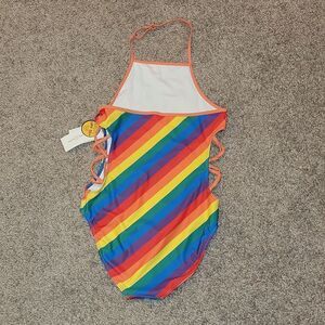 New With Tags TREASURE & BOND Kids' Cutout One-piece Swimsuit In Orange Vibrant Multi Stripe
