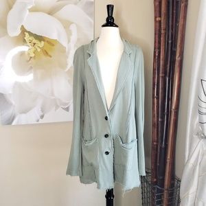 Treasure & Bond~Green Buttonup Distressed Cardigan