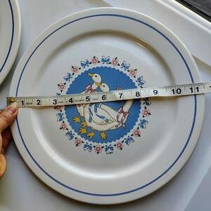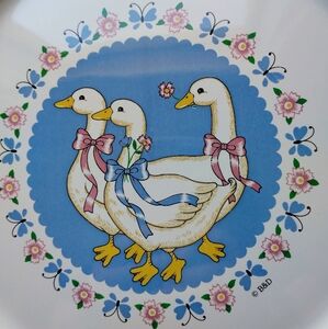 Enhance your dining experience with these charming white and blue dinner plates featuring a delightful duck design. Perfect for adding a touch of whimsy to your table setting, Vintage Treasure Craft Ribbon Geese 2 Piece Large Spread Plate Set, Geese Design, USA Craft, Blue & White Flower & Butterfly Decor, Clean in Good Condition, Fast & Secure Shipping, Well Packaged, Smoke & Pet Free Home.
