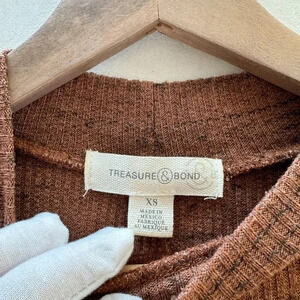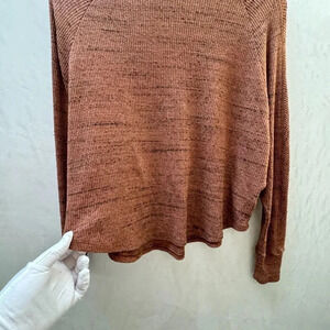 Treasure and Bond || Baby Cowl Cropped Curved Hem Slub Sweater Rust Orange XS