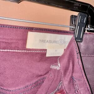 These Treasure and Bond jeans are a stylish addition to any wardrobe. The burgundy coated finish gives them a unique look, while the high-rise and bootcut style flatters your figure. Perfect for dressing up or down, these jeans are sure to become a favorite. In great condition. Grab them now!